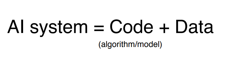 기계 학습 시스템을 개발할 때 명심했으면 하는 한 가지 프레임워크는 기계 학습 시스템의 AI 시스템이 데이터뿐만 아니라 알고리즘 또는 모델을 의미하는 코드를 모두 포함한다는 것이다.