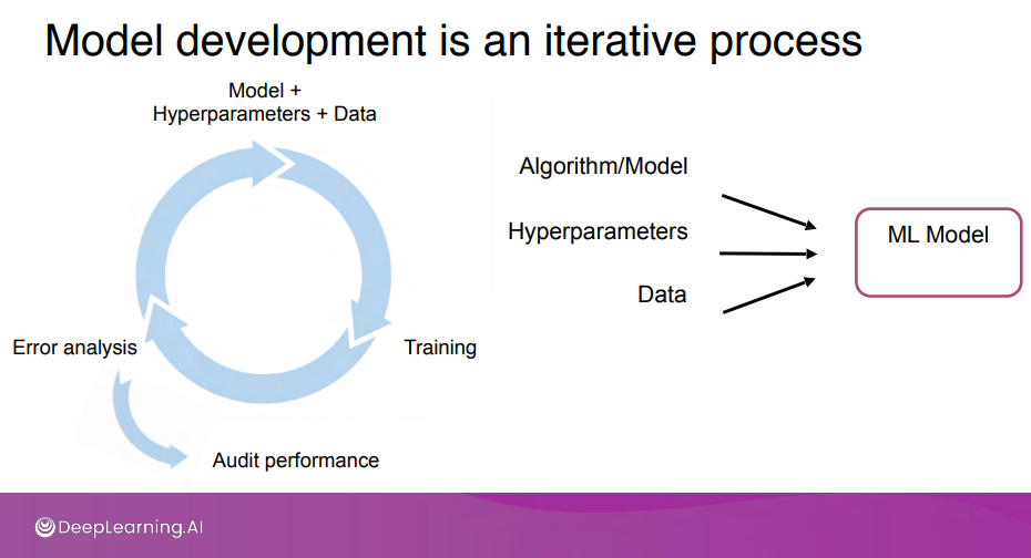 일반적으로 일부 모델과 하이퍼파라미터 및 데이터 교육 모델로 시작한 다음 모델을 사용하여 오류 분석을 수행하고 모델이나 하이퍼파라미터 또는 데이터를 개선하는 방법을 결정하는 데 사용한다.