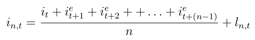 각각의 단기 중기 장기 이러한 채권 시장들이 서로 연관성이 상당히 크기 때문에 서로 시장들간에 영향을 많이 주고 받는다라는 기본적인 가정. →따라서 장기 채권의 수익률은 단기 채권 수익률의 평균치임.