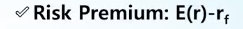 **⇒ 리스크 프리미엄을 동일한 포트폴리오가 갖는 수익률의 표준편차로 나눔**