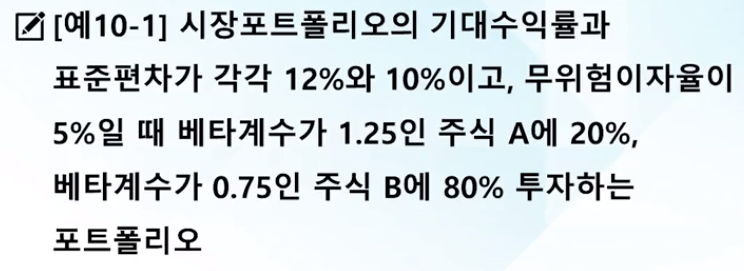 - 무위험 자산과 시장포트폴리오의 베타계수는 각각 0과 1
