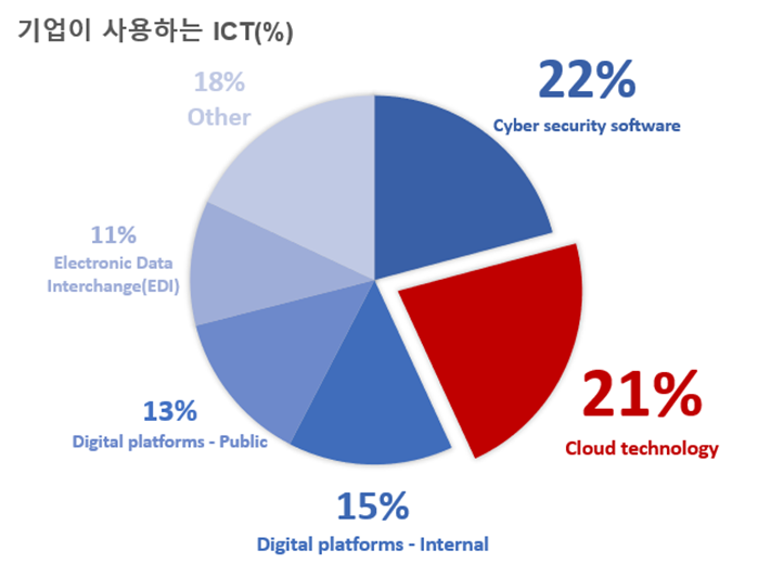 호주 기업들은 빠르게 디지털 혁명의 선두주자로 나서며, 새로운 경제 환경에 적응하기 위해 정보 통신 기술 (ICT) 분야에서 클라우드 기술을 적극적으로 도입하고 있다. 호주 통계청에 따르면 호주 내 기업이 사용하는 ICT 기술 중 사이버 보안과 관련된 소프트웨어가 22%를 차지하였고, 클라우드 기술이 21%를 차지하며 그 뒤를 이었다. 이처럼 호주 내 ICT 기술 중 클라우드는 상당한 비중을 차지하고 있다.