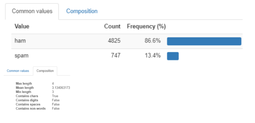 - 빈도값(Common values), 구성(Composition) 탭 제공