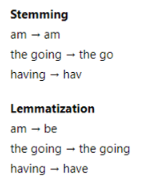 - 예를 들어, am, are, is 는 서로 다른 스펠링이지만 그 뿌리 단어는 be라고 볼 수 있음. 이 단어들의 표제어는 be임