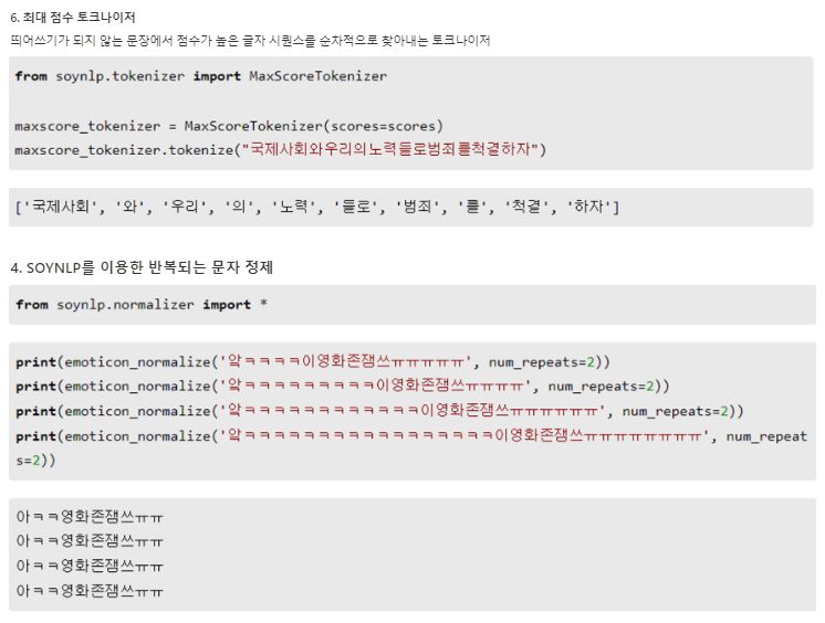 - 텍스트 데이터에서 특정 문자 시퀀스가 함께 자주 등장하는 빈도가 높고, 앞 뒤로 조사 또는 완전히 다른 단어가 등장하는 것을 고려해서 해당 문자 시퀀스를 형태소라고 판단하는 단어 토크나이저