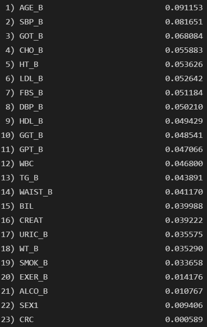 먼저 전체 데이터 프레임에서 타겟값을 제외한 나머지 columns X_df로 설정하고, LUNG을 y_df로 설정한다.