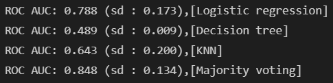 a_clf_labels = ['Logistic regression','Decision tree','KNN','Majority voting']