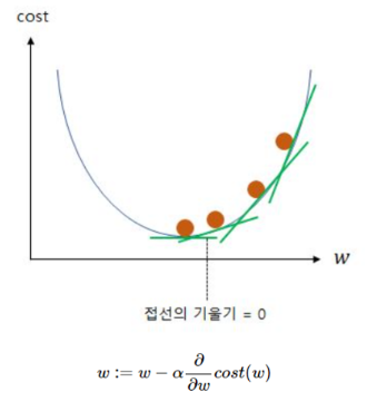 머신러닝에서는 실제값과 예측값의 오차를 계산하여 이를 최소화하는 최적의 w와 b를 찾아냄