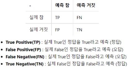 - 모델이 True라고 분류한 것 중에서 실제 True인 것의 비율
