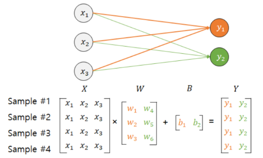 ex) 4개의 샘플을 한 번에 계산한다고 생각. 4개의 샘플을 하나의 행렬 X로 정의