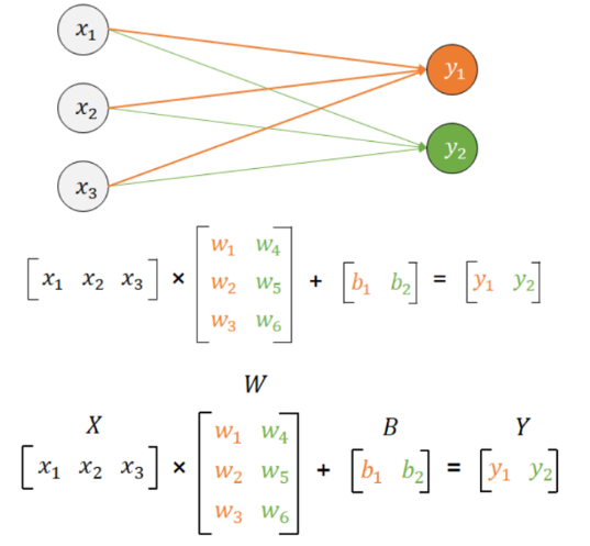 Y = XW + B