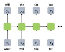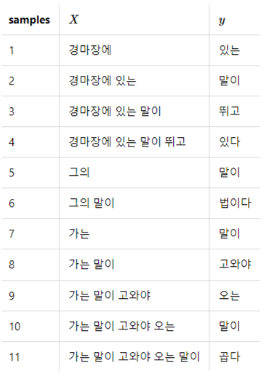 what will the fat cat sit 시퀀스를 모델의 입력으로 넣으면, will the fat cat sit on를 예측하도록 훈련됨