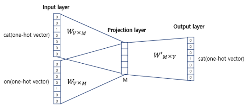- CBOW에서 투사층의 크기 M은 임베딩하고 난 벡터의 차원이 됨