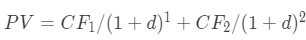[예] 1년 후 CF1, 2년 후 CF2의 현금흐름을 얻는 투자안의 현재가치 계산
