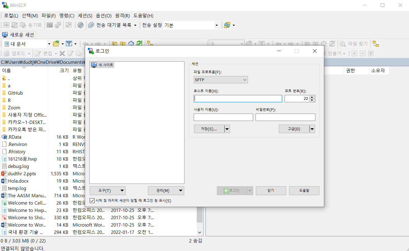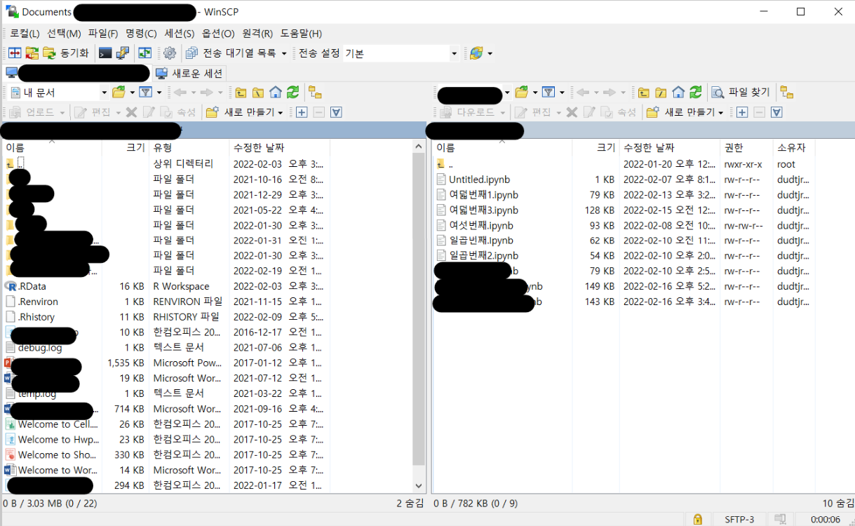호스트 이름, 포트 번호, 사용자 이름, 비밀번호를 입력한 뒤 리눅스 시스템과 연결하여 주피터를 사용하였다.