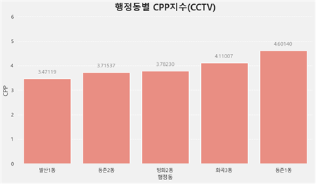 동 추출기준은 다음과 같은 지수 CPP(CCTV Per Population)를 만들어 가장 값이 낮은 동을 채택했다.