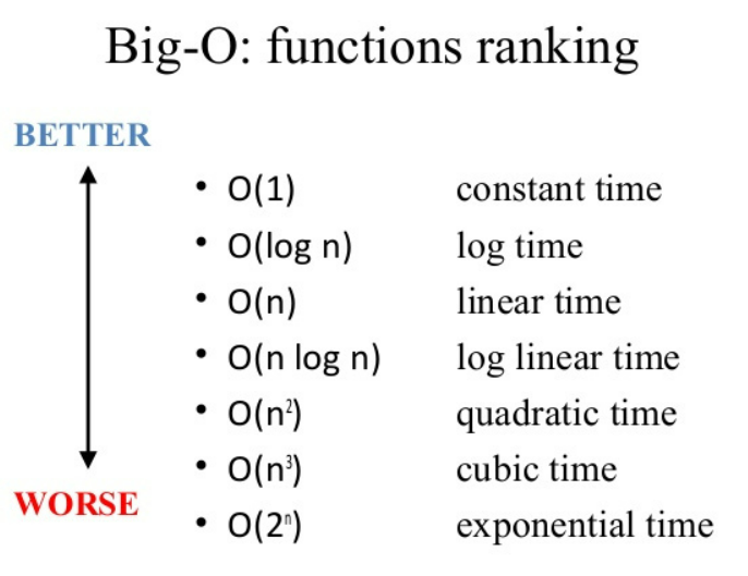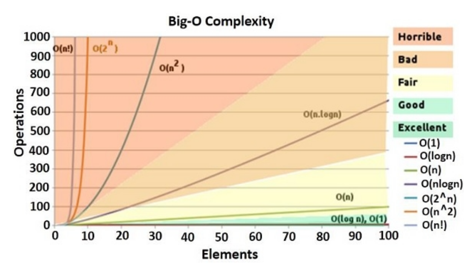 일반적으로 O(n)의 시간복잡도를 가지면 좋은 알고리즘으로 취급.