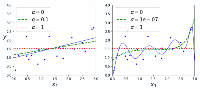 이 규제는 비용함수에 추가되는 것으로 테스트 세트에서 성능을 평가하거나 예측할 때 적용되지는 않는다.