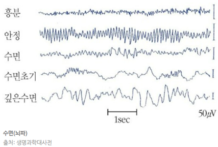 수면이란 ‘피로가 누적된 뇌의 활동을 주기적으로 회복하는 생리적인 의식상실 상태’로 ‘비-REM수면(NREM)과 급속한 안구 운동을 동반하는 ‘REM(Rapid Eye Movement)수면’이 교대로 나타난다.
