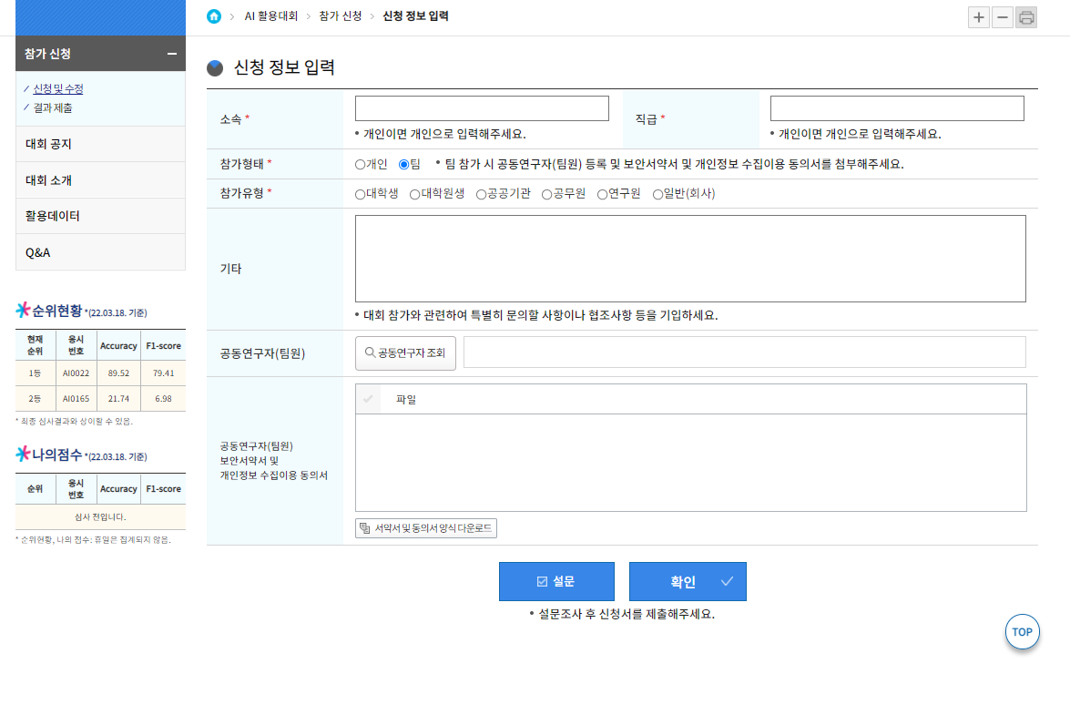 약 3주간의 기간동안 3명이 팀을 이뤄 통계데이터 인공지능 활용대회와 '산업분류' 를 끝마쳤다.