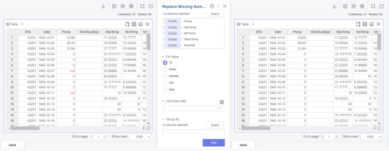 Input Columns에는 MeanTemp,MaxTemp,MinTemp를,