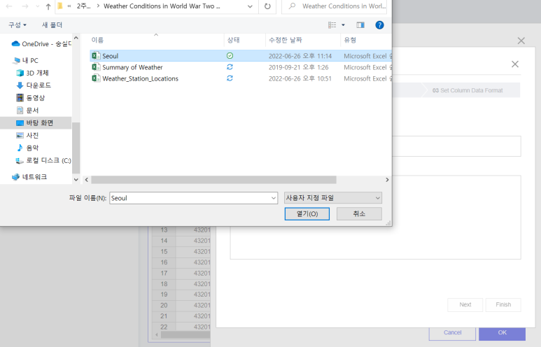1. 날씨 관측 위치에 관한 파일과 2. 날짜에 따라 관측된 파일로 나뉩니다.