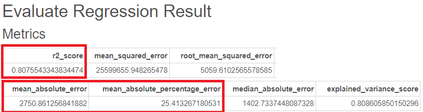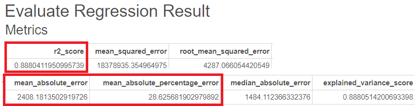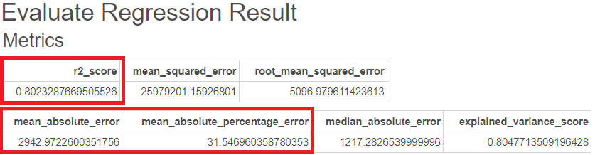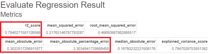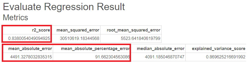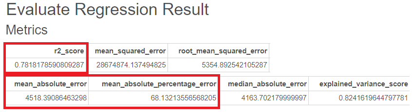 그에 대한 평가지표를 Evaluate Regression 함수를 통해 도출했습니다.