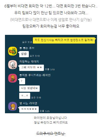 그러다보니 팀원들과 만날 일도 많아지고 회의도 잦았던 것 같아요!