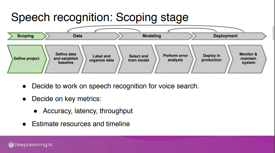1. Scooping : 프로젝트를 정의하고 음성 인식 작업을 결정해야 한다.