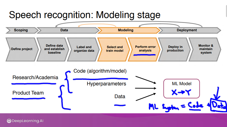 3. Modeling : 모델을 훈련해야 하고 오류 분석도 수행해야 한다.